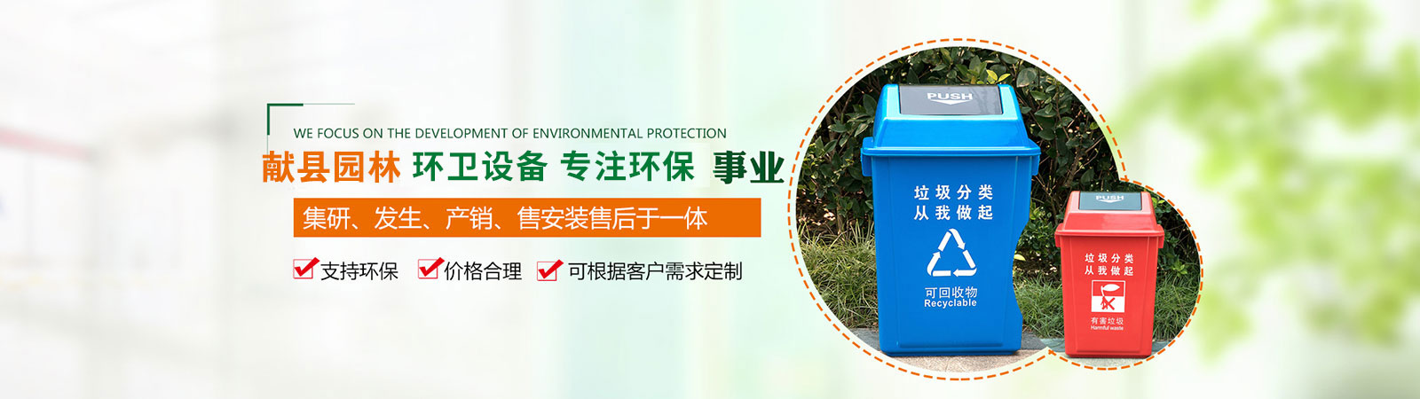 產品有:果皮箱、垃圾箱、花盆、護花欄、路椅、大型袋裝垃圾箱、保潔專用三輪車及環(huán)藝雕塑、健身器材及物業(yè)小區配套設施等。